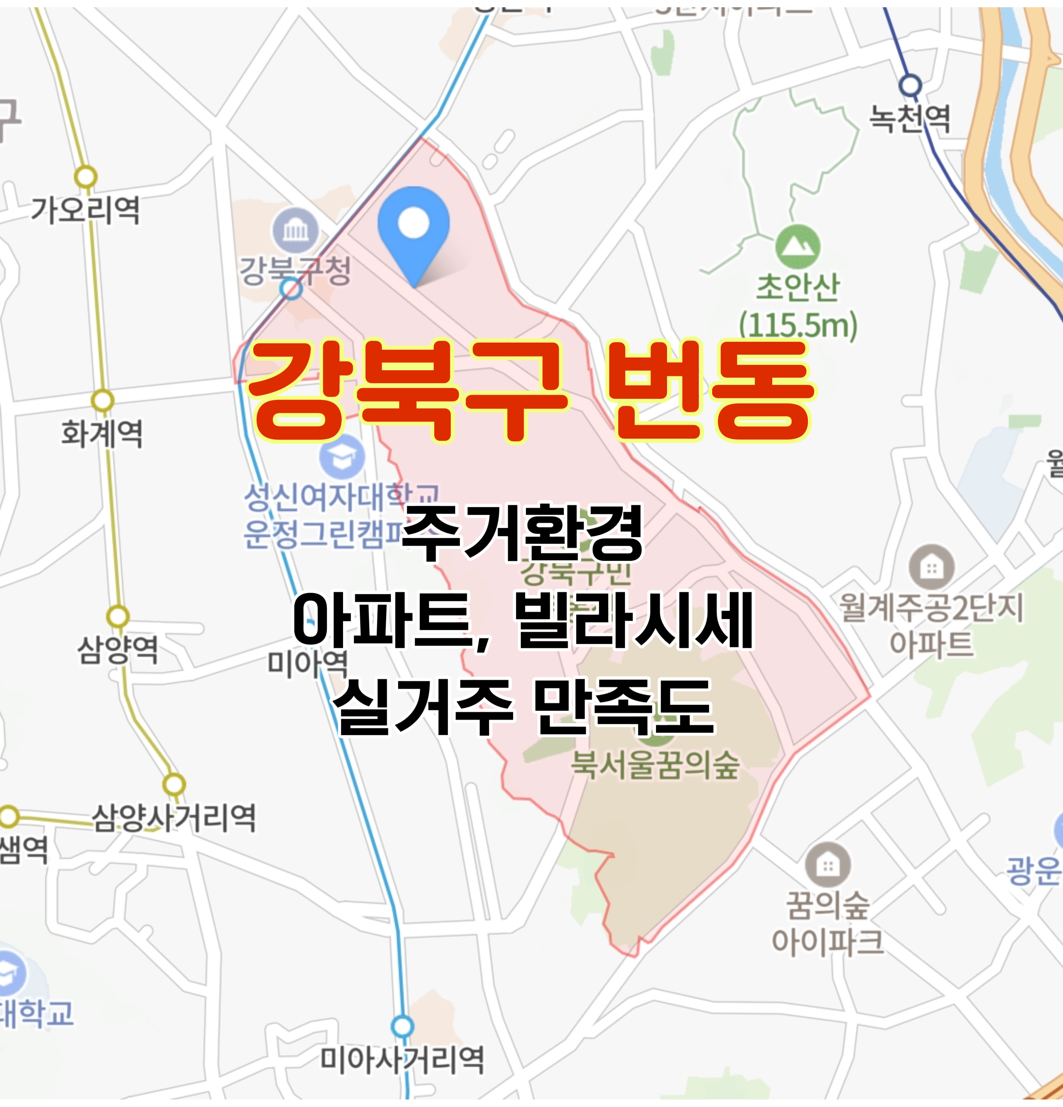 강북구 번동은 서울 강북 지역에서도 교통과 생활 인프라가 잘 갖춰진 주거지로 평가받고 있습니다. 실거주를 고려하는 사람들에게 번동의 아파트·빌라 시세, 생활 환경, 교통 편의성을 분석하고, 실거주 만족도가 높은 지역을 추천합니다.