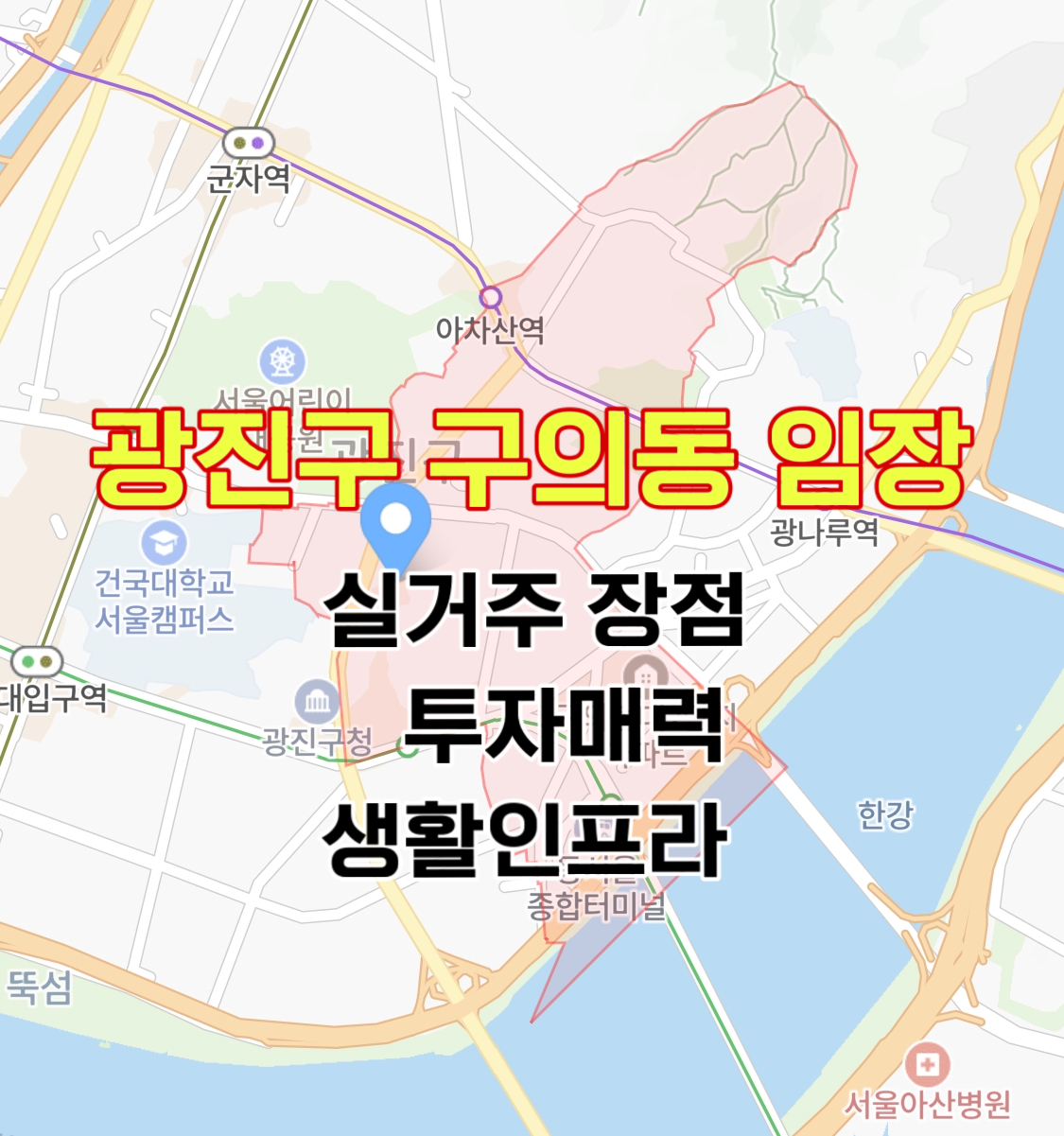 이처럼 구의동은 뛰어난 교통 접근성, 자연친화적인 환경, 학군, 생활 인프라 등 실거주에 최적화된 조건을 갖춘 지역입니다.