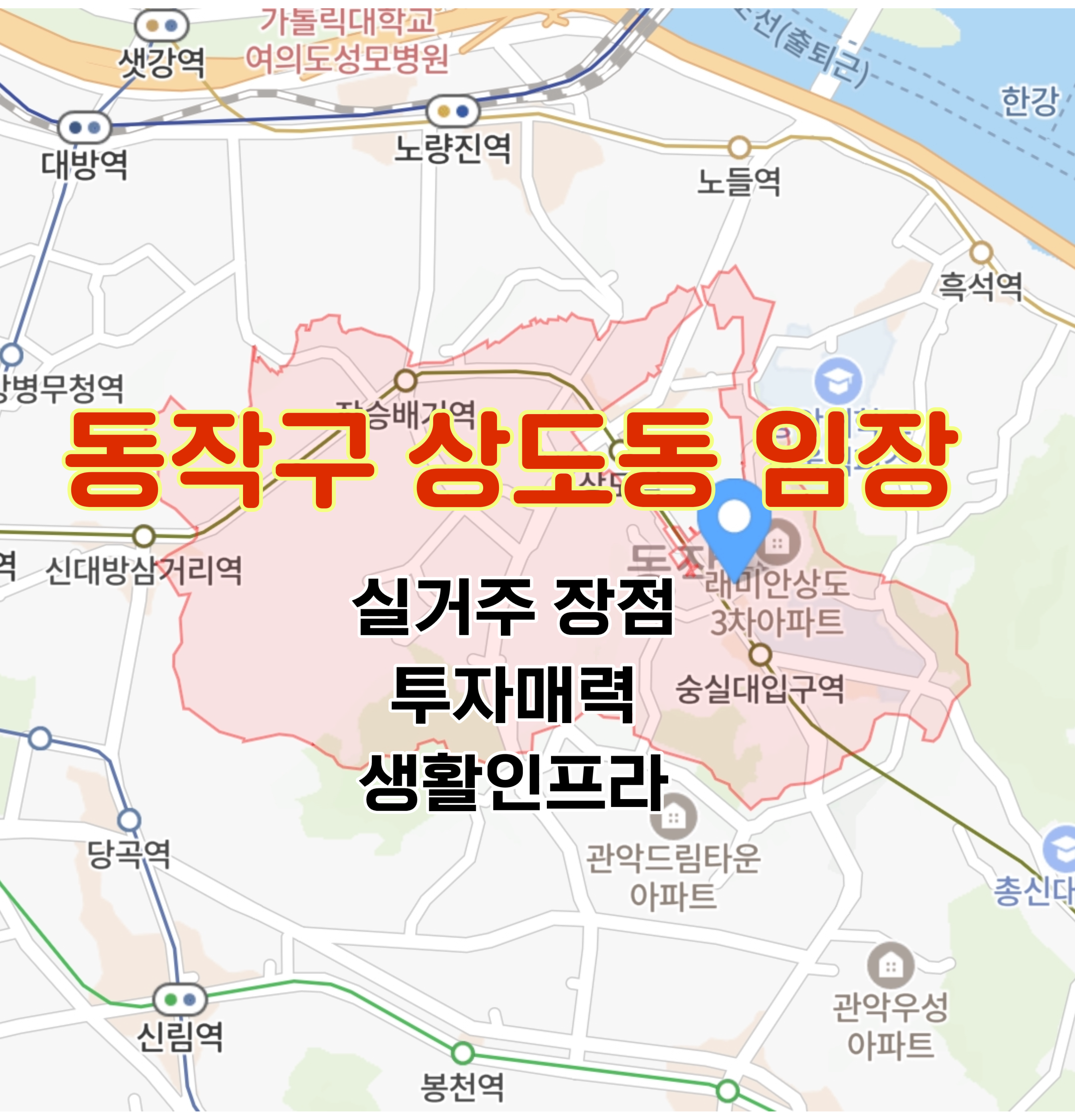 상도동은 서울 서남권에서 생활 인프라가 매우 잘 갖춰진 지역으로, 실거주 및 투자에 적합한 환경을 제공합니다.